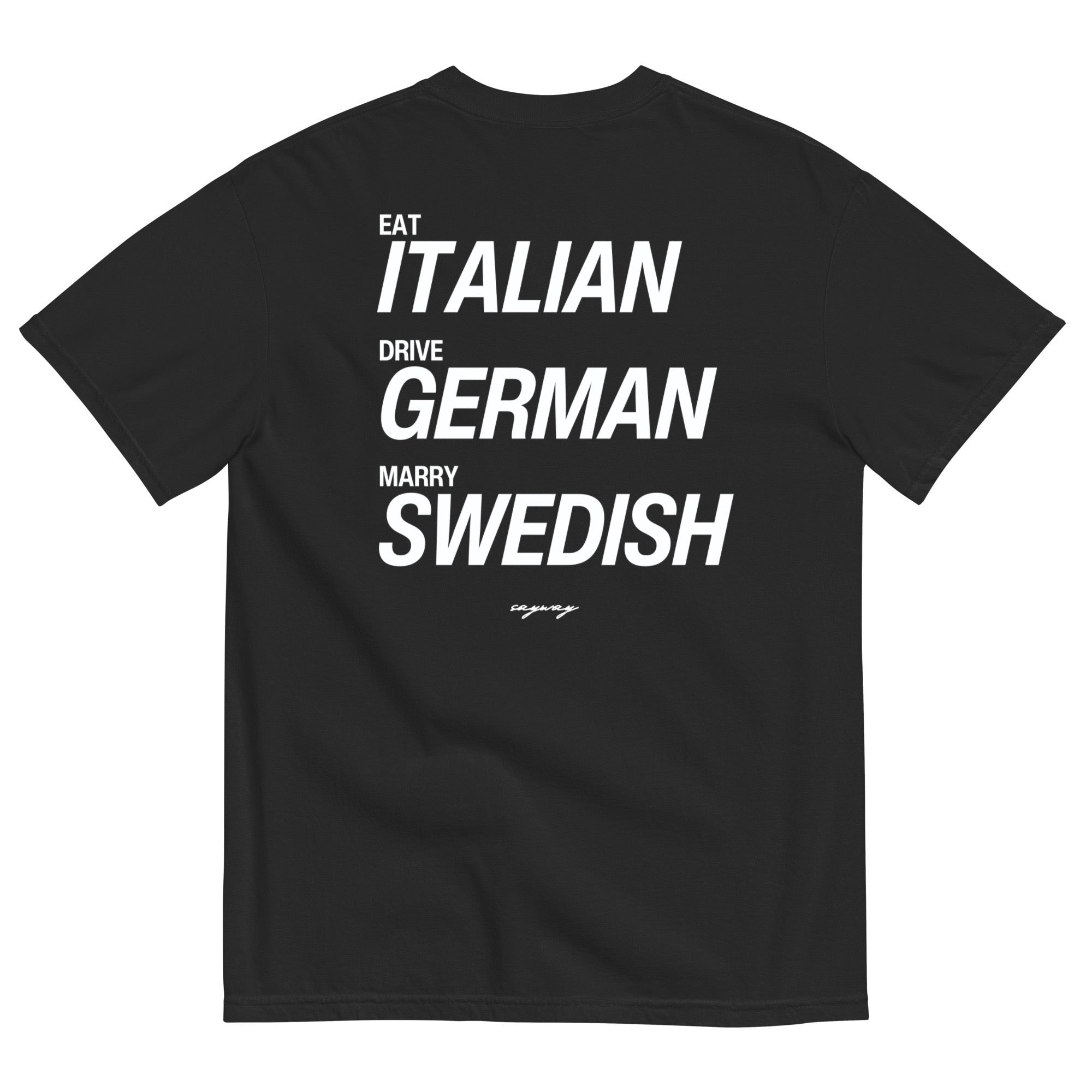 EAT ITALIAN, DRIVE GERMAN, MARRY SWEDISH (BLACK)