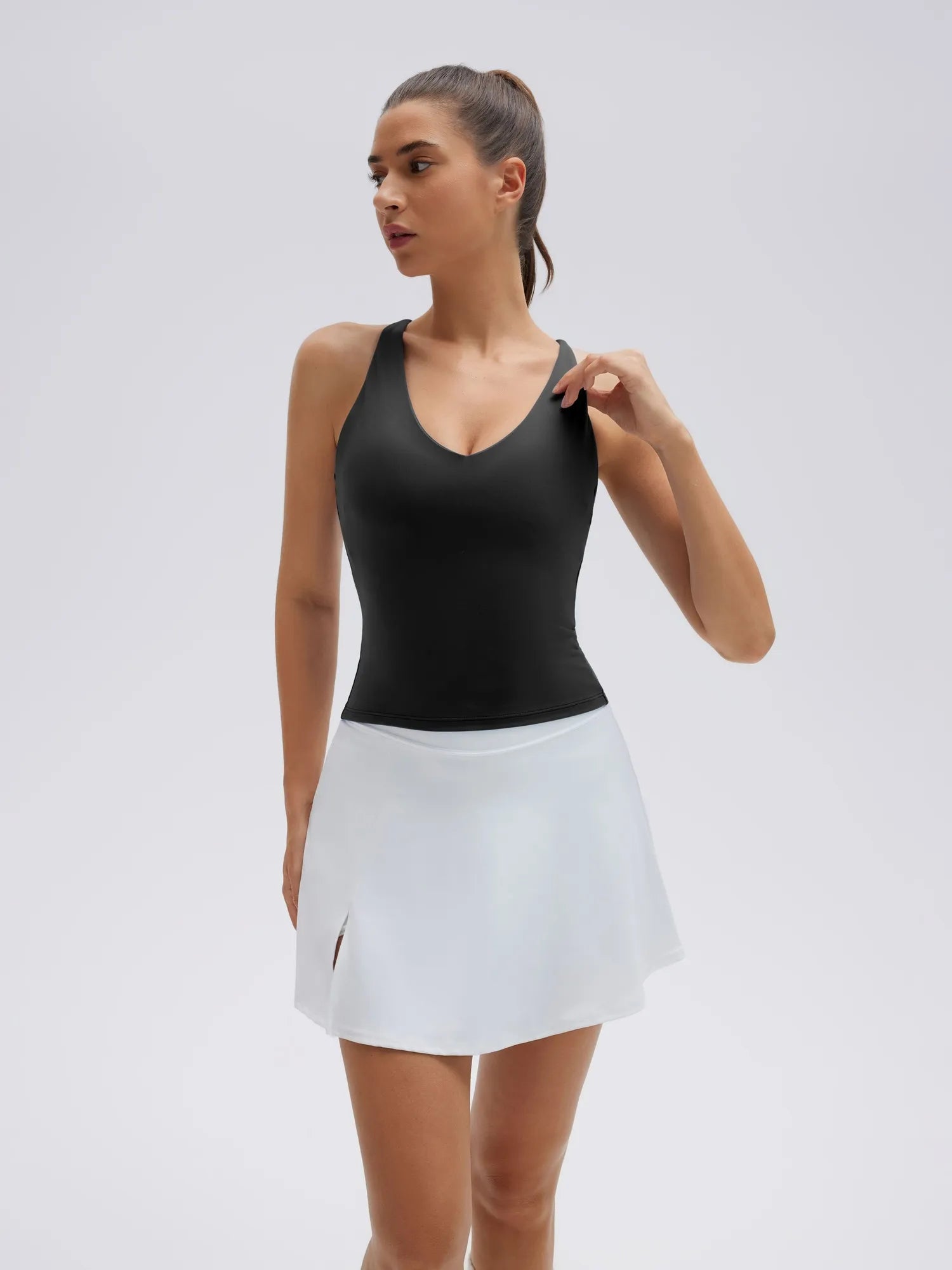 Open Back V Neck Padded Longline Workout Tank Tops