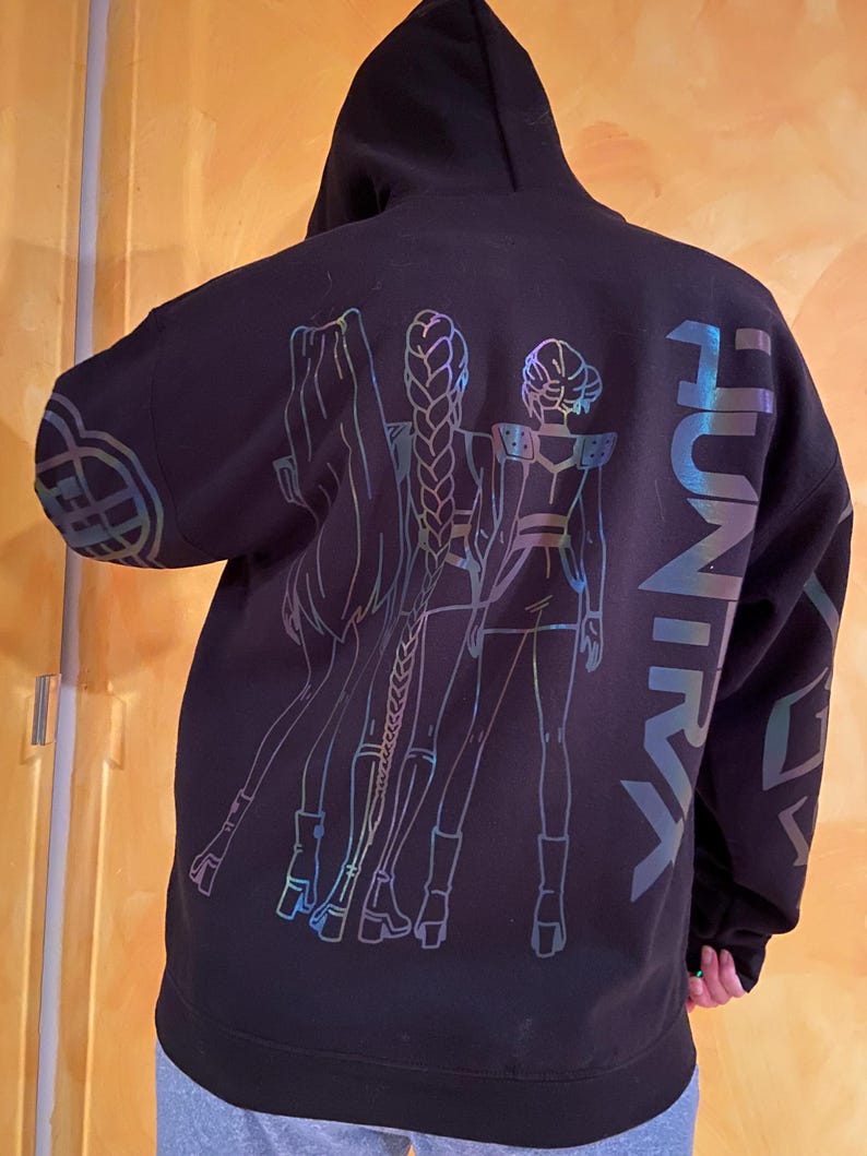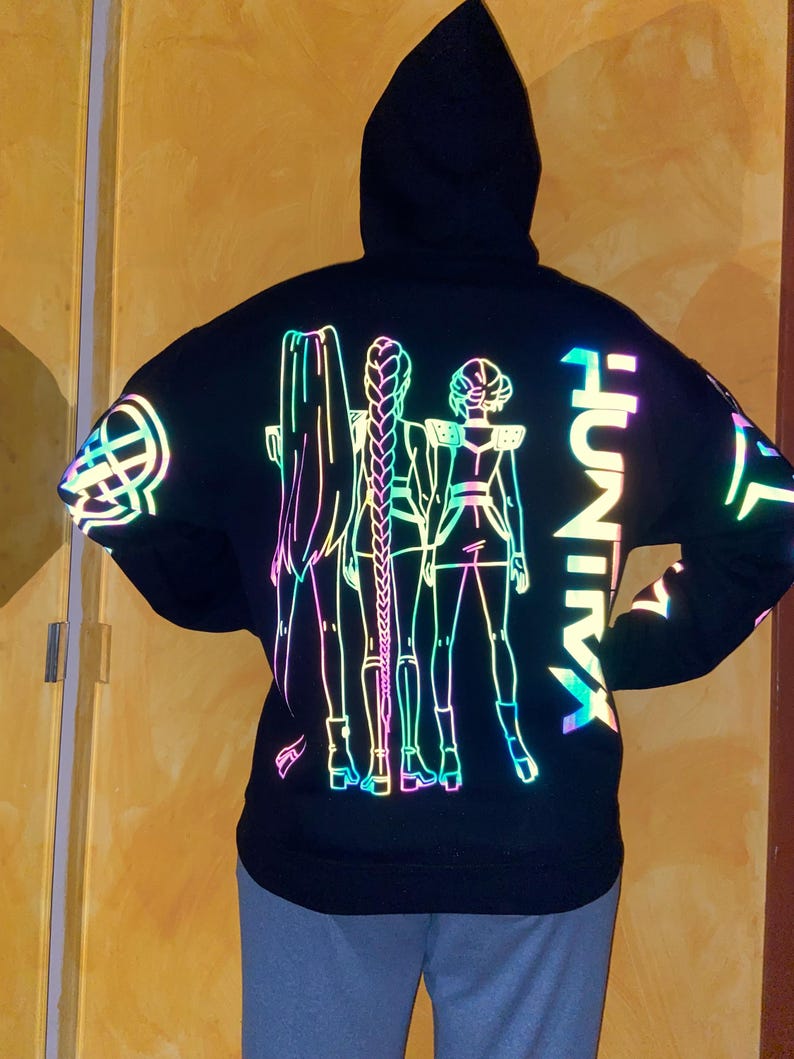 Huntr.x Rainbow Reflective Hoodie, loose fitting nighttime riding garment pullover